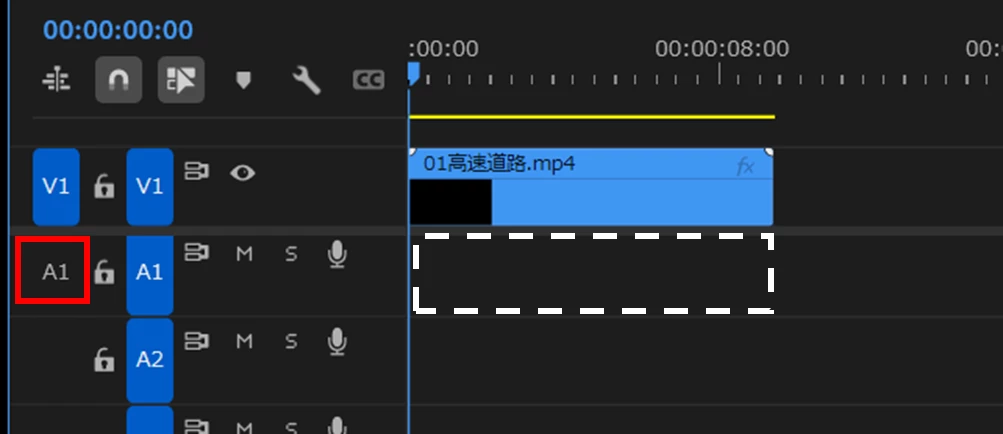 「V1」または「A1」のどちらかが「ON」の場合は、「ON」になっているトラックの映像クリップまたは音声クリップが配置されます。