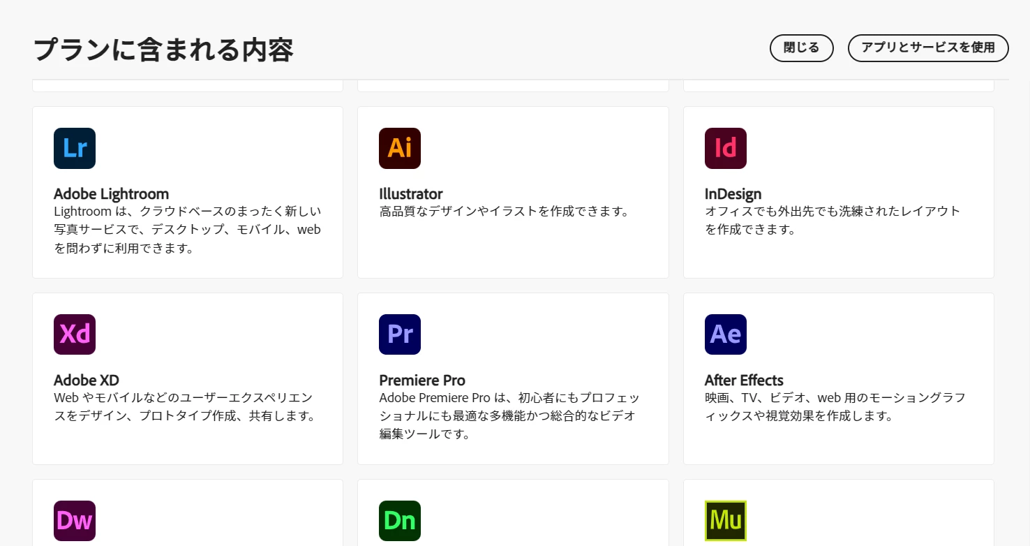 ▼すべてのアプリ | Adobe Creative Cloud