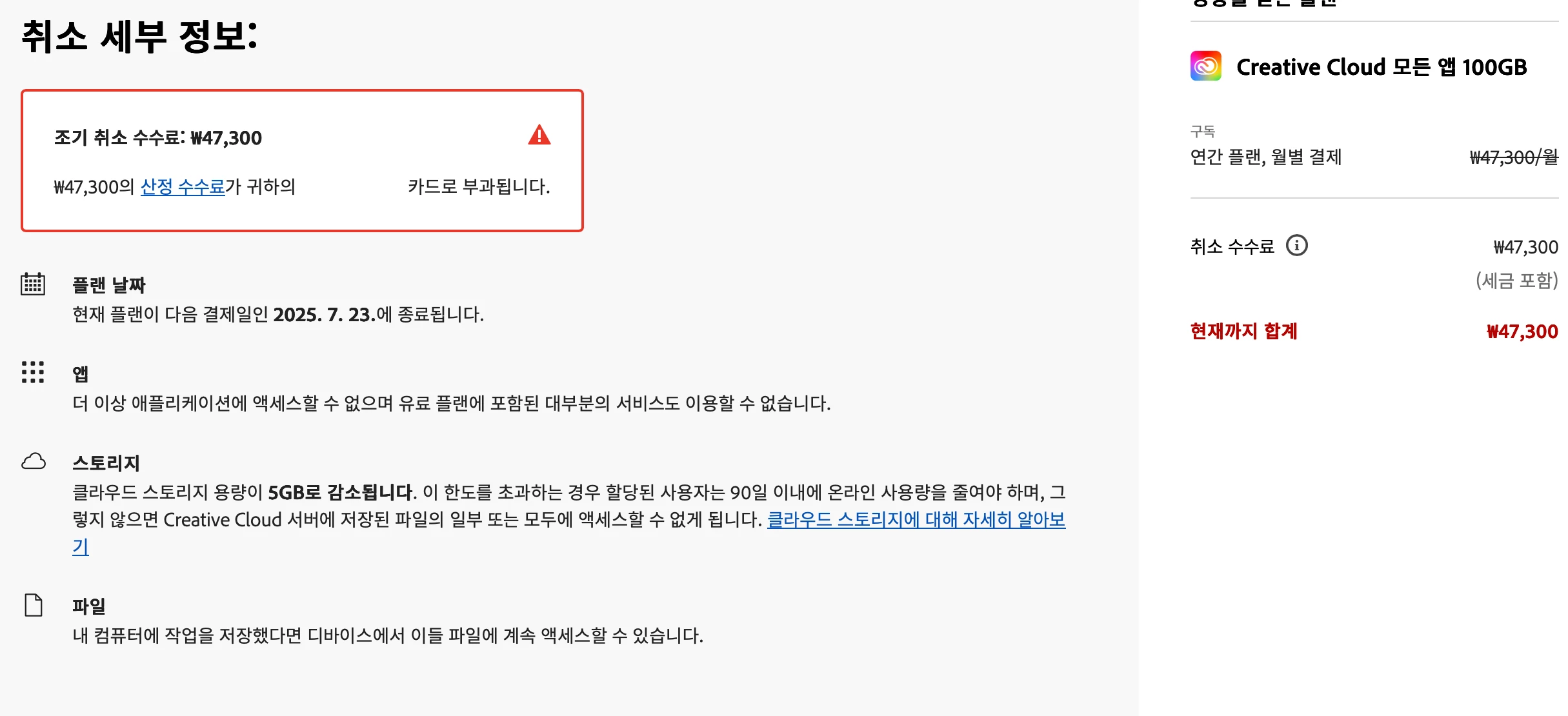 안녕하세요! 구독 취소하려하는데요, 어제 47,300원이 결제돼서 구독취소 진행하려하는데 수수료가 부과된다고 떠서요.. 그럼 2중으로 결제 되는 건가요? 이 금액에 대한 환불 못받나요?