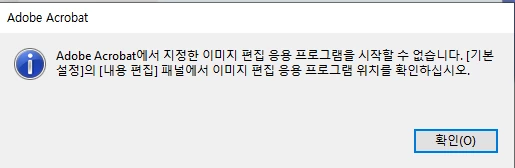 acrobat에서 이미지 편집 시 어느순간 이런 메시지가 뜹니다.