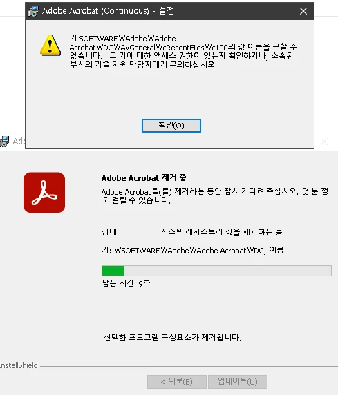 Acrobat Cleaner Tool로도 삭제가 안되었습니다.