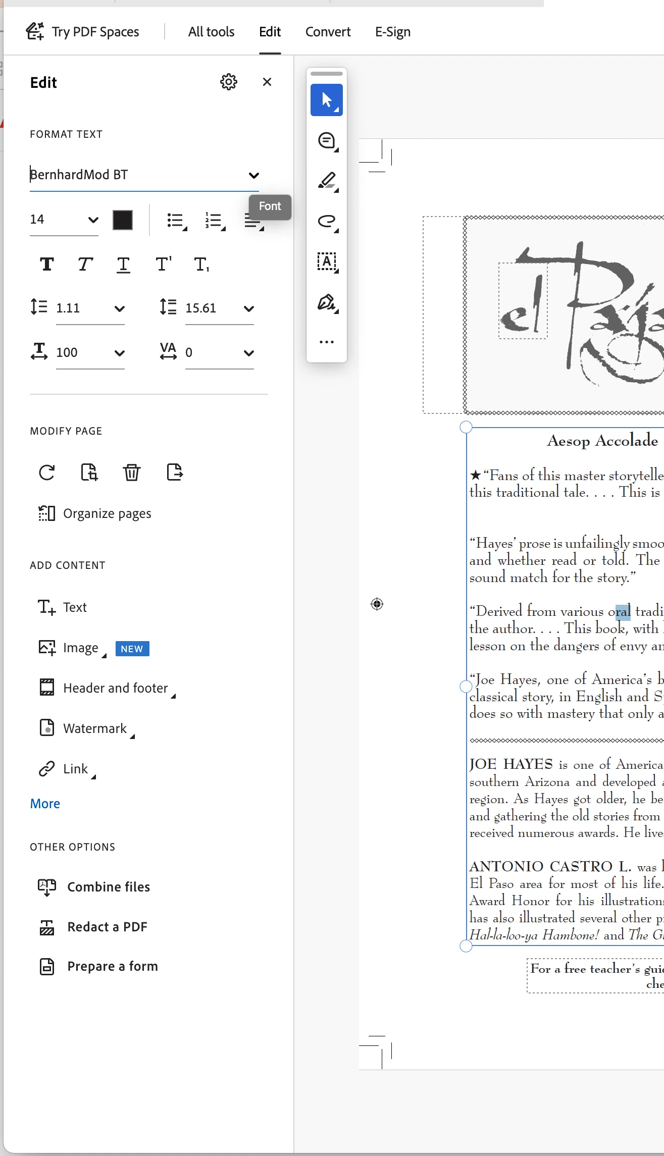 PDF 편집에서 텍스트 변경시 서체 리스트가 생성되지 않습니다.