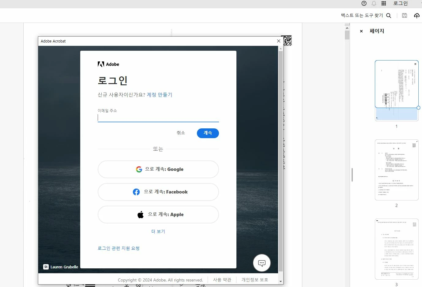 로그인 창이 뜨면서 Acrobat이 종료 됩니다.