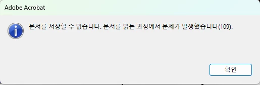 문서를 저장할 수 없습니다. 문서를 읽는 과정에서 문제가 발생했습니다. (109)