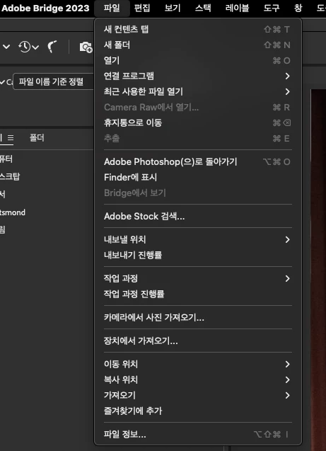 Camera Raw 환경 설정을 삭제 후 브릿지를 종료 후 재실행 해서 확인해 주세요.