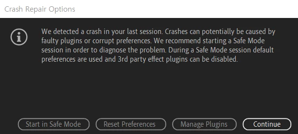 모션그래픽 충돌 복구 옵션 이라고 나와 있는데 어떻게 해야 해요?