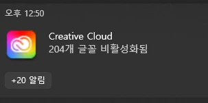 어도비 폰트에서 폰트를 활성화할 때마다 알림이 옵니다. 근데 활성화를 할 때마다 OO개 글꼴 비활성화됨 이라고 하는데요, 분명 활성화를 했는데 자꾸 비활성화라고 하니깐 어지럽습니다.