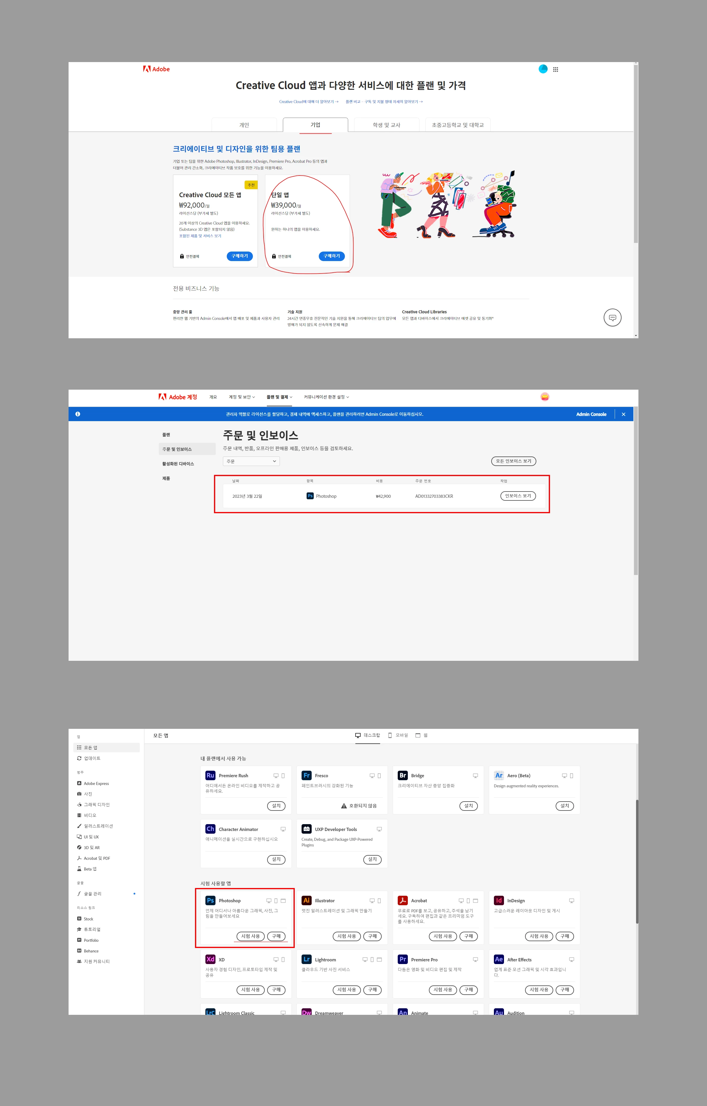 회사에서 포토샵만 필요해서 모든 앱 말고 단일 앱을 사용하는 39000원짜리 플랜을 구매했습니다~!