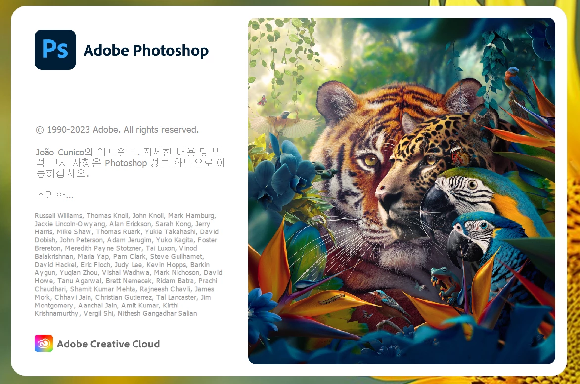 포토샵이 25.0 버전까지는 실행이 되는데 그 이후 25.1 / 25.2 / 25.3.1 업데이트를 하면 그림과 같은 화면에서 멈추고 실행이 안되는데