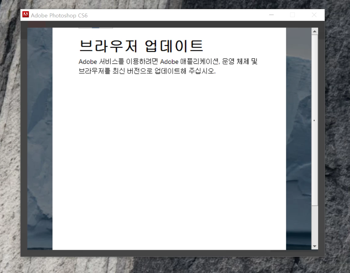 또다시 작동도 안되는 브라우저 업데이트 창이 뜸. 이게 뜨면 컴퓨터 다시 시작해야 사라짐.