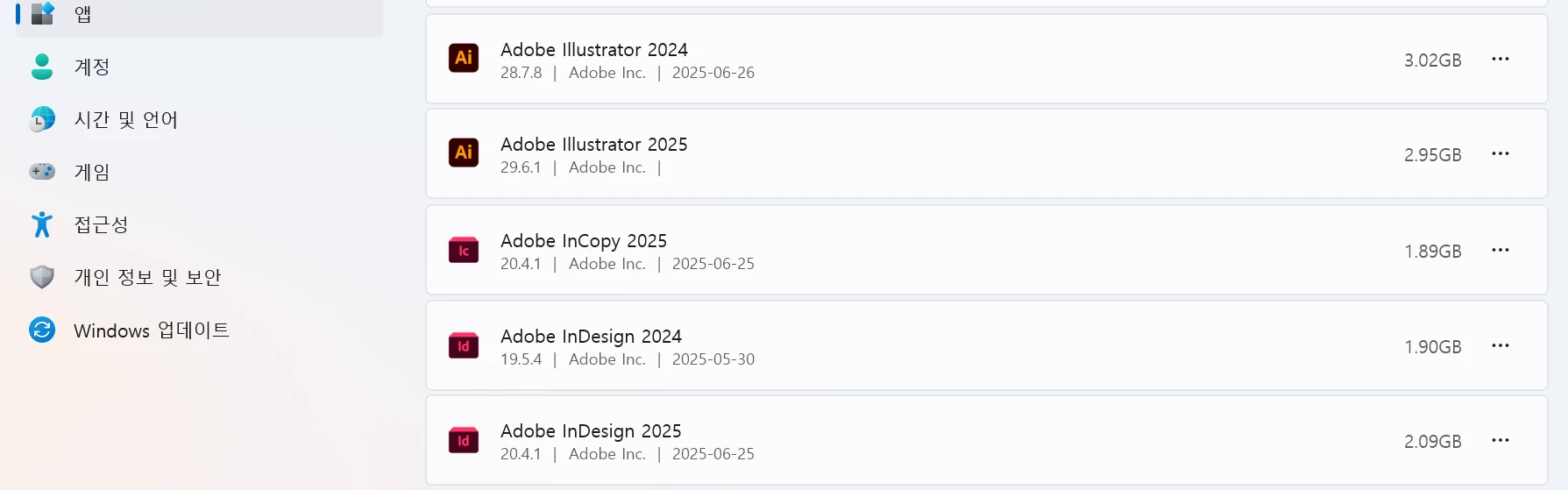 안녕하세요, 노트북에서 어도비의 크리에이티브 클라우드를 사용하고 있는 학생입니다. 근데 제 노트북 용량이 256GB밖에 되지 않아서 어도비 여러 프로그램들이 제 노트북의 저장 공간을 많이 잡아먹는 상황입니다. 그래서 제가 잘 사용하지 않는 InCopy 2024 버전을 지워버렸는데 문제는 없을까요? 그리고 어도비 각 프로그램마다 2024, 2025 버전이 둘 다 제 컴퓨터에 존재하는 이유는 무엇인가요? 2025 버전만 있어도 프로그램이 실행되지 않는지 궁금합니다. (참고로 저는 어도비 크리에이티브 클라우드를 2024년부터 이용했습니다.)