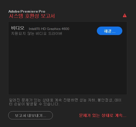 Premiere Pro 2020 실행 시, 지원되지 않는 비디오 드라이버라고 함.