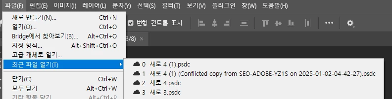 EX . 작업물 자동저장후 포토샵으로 열린뒤의 레이어 사진 / 저장을 추가로 더 해보신게 있는지 등