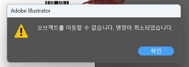 일러스트 오브젝트를 이동할 수 없습니다. 명령이 취소되었습니다 창이 나오면서 오브젝트를 움직일 수 없습니다. 해결 방법 없을까요 너무 급합니다 ㅠㅠ