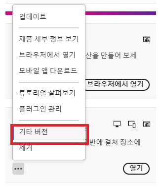 CREATIVE CLOUD 데스크탑 앱에서 라이트룸의 점세개 버튼을 누르면