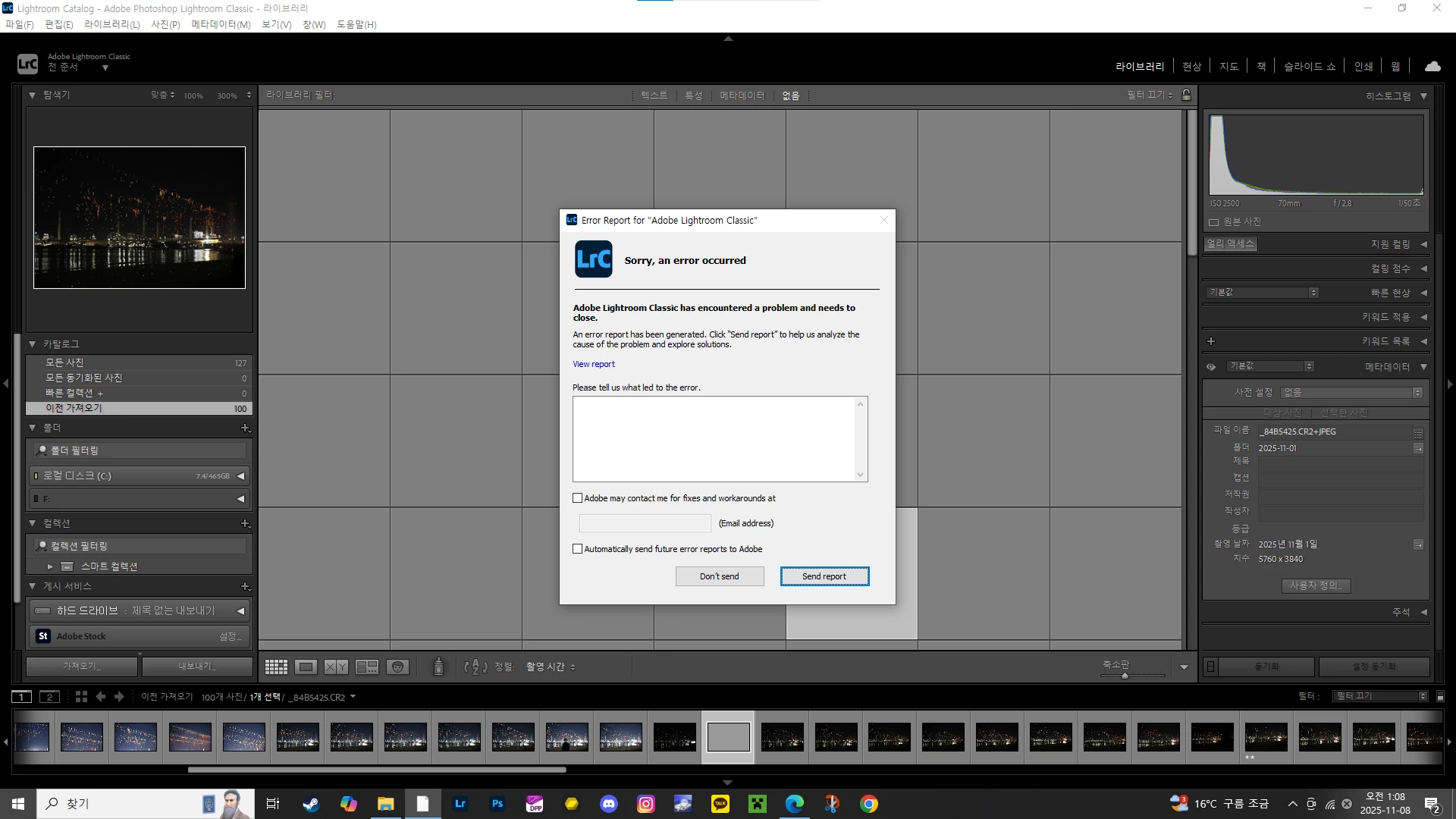 라이트룸 클래식 카탈로그 작동이안됩니다