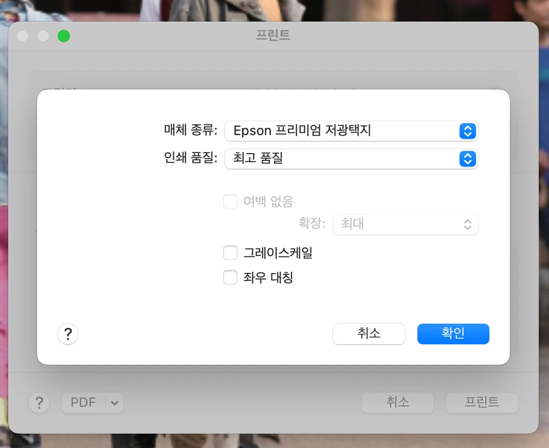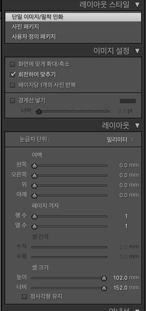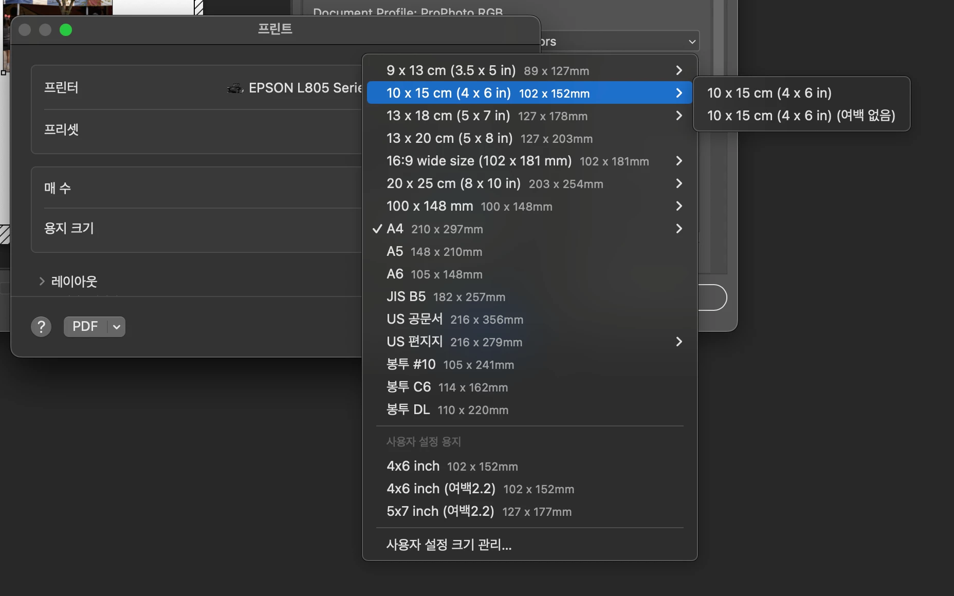 페이지설정에서 인화지를 다양하게 설정할 수 있었는데