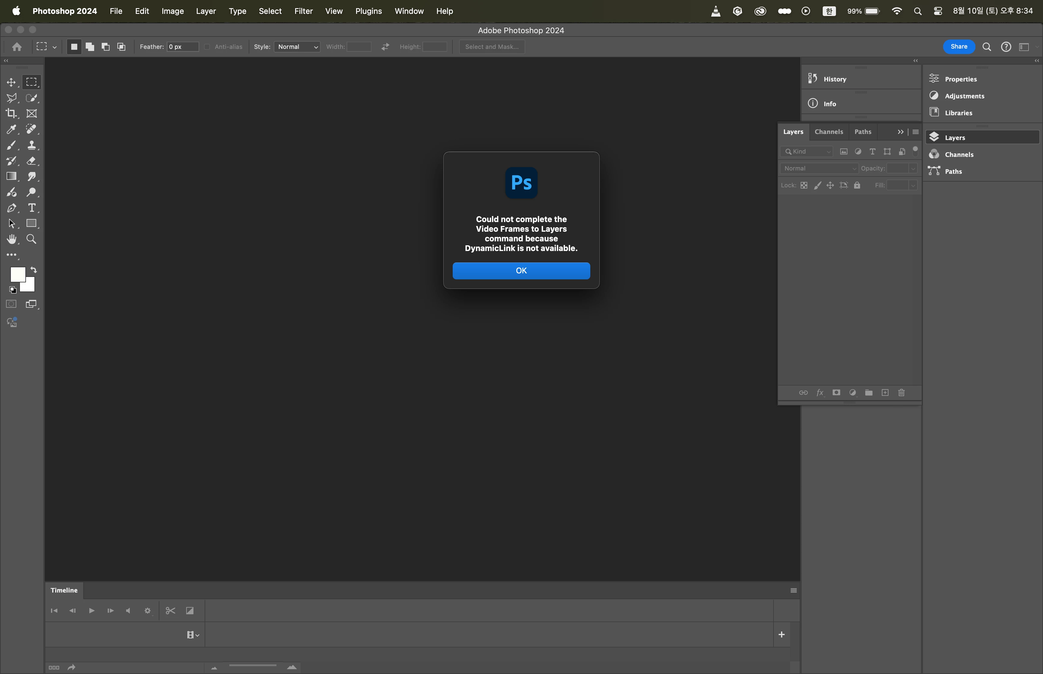 비디오 임포트 다이나믹링크 오류 어떻게 해결하나요?
