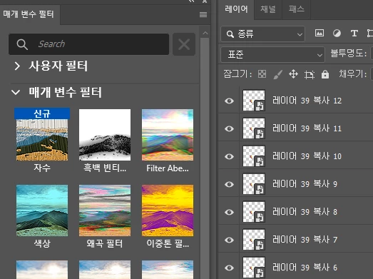 ㄴ 플러그인에서 필터 삭제후 기본 필터 복원 시도 (이 경우 레이어 복사 조차 되지 않음)