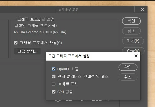 그래픽 프로세서활성화에 관해 검색해보고 확인도 해봤는데
