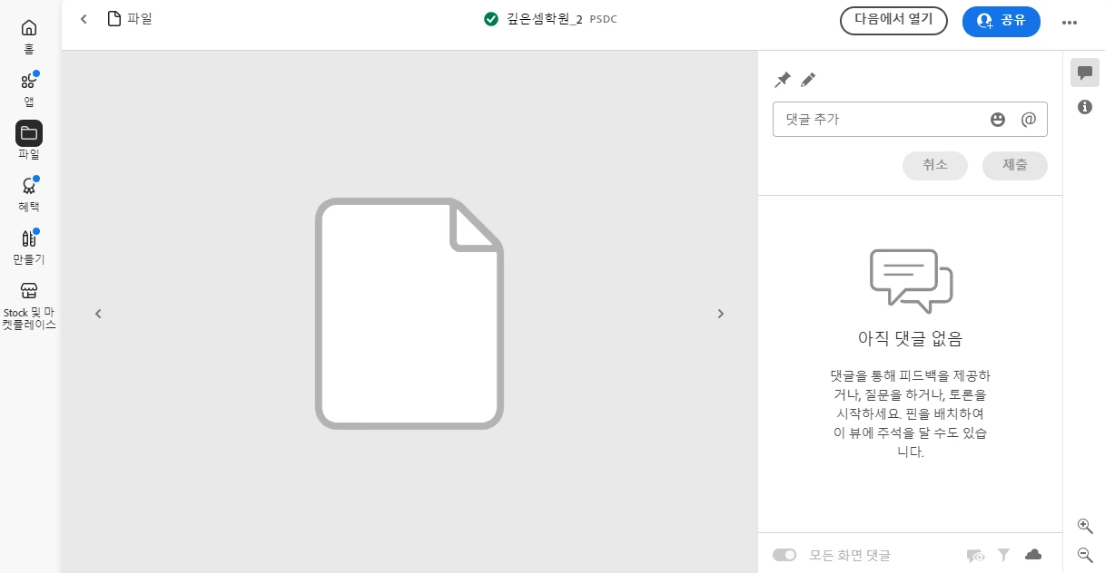 다만 한 번 이 파일을 로컬로 다운로드 해서 ( PSD ) 포토샵 프로그램에서 실행해 볼 순 있을 듯합니다. 포토샵 프로그램에서 실행이 안 된다면 웹 포토샵에서도 한 번 실행해 볼 수 있습니다.