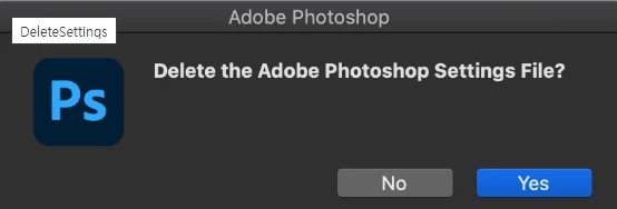 2. "Adobe Photoshop 설정 파일을 삭제하시겠습니까?"라고 묻는 대화 상자에서 예를 클릭합니다