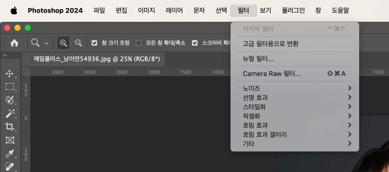 단축키로 했는데 안나오길래 필터 들어가니 아예 메뉴 자체가 없네요...