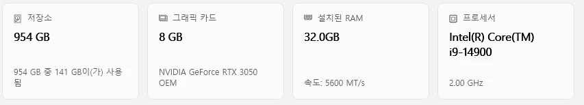 현재 컴퓨터 사양입니다