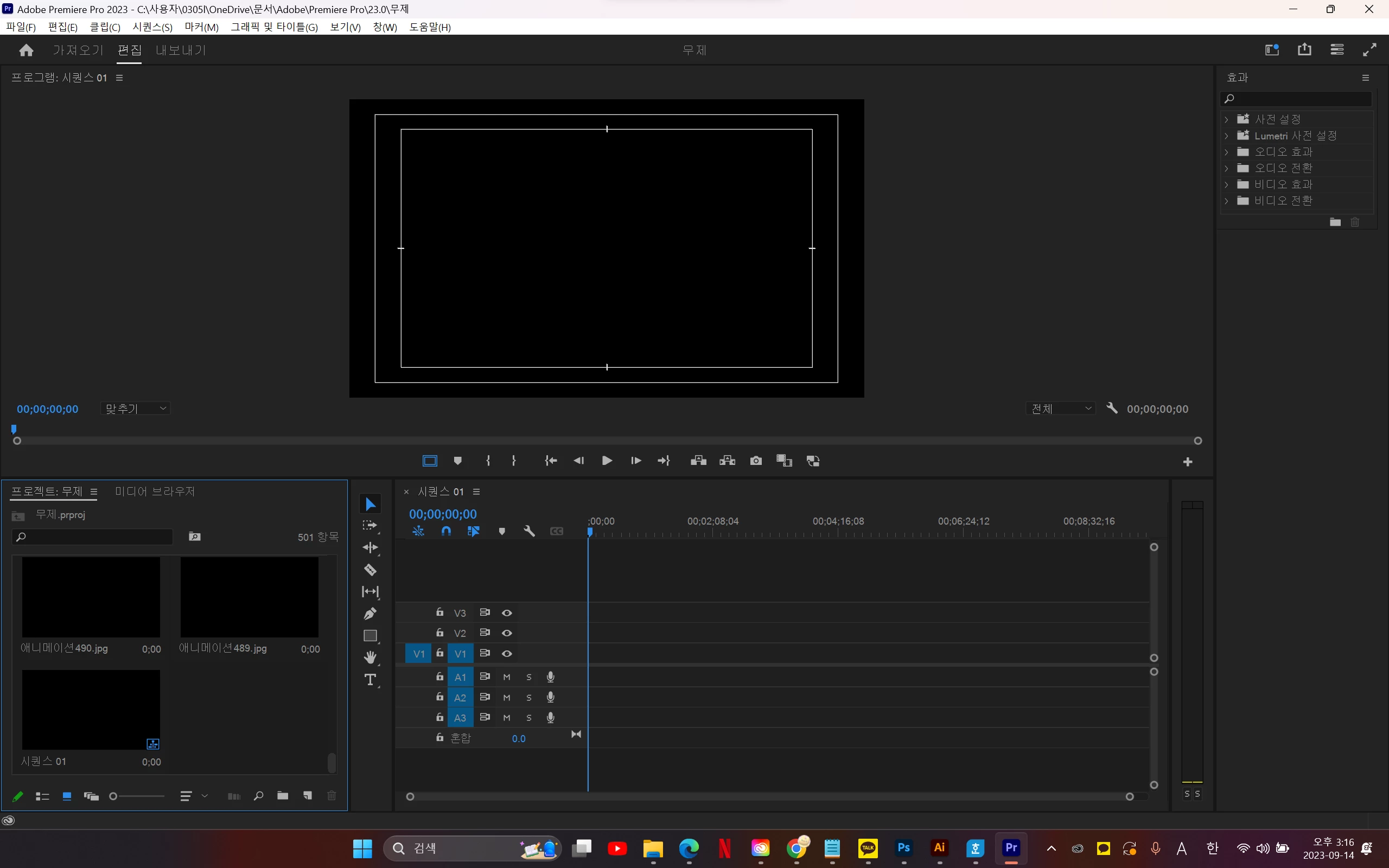 프리미어 프로 사진 가져오기 오류