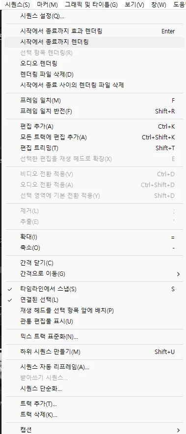 우선 상단의 시퀀스 메뉴를열어서 시작에서 종료까지 렌더링을 진행해도 동일하게 재생에 문제가 생기는지 확인및 다른 영상도 동일하게 재생이 안되는지 확인이 필요해 보이네요.